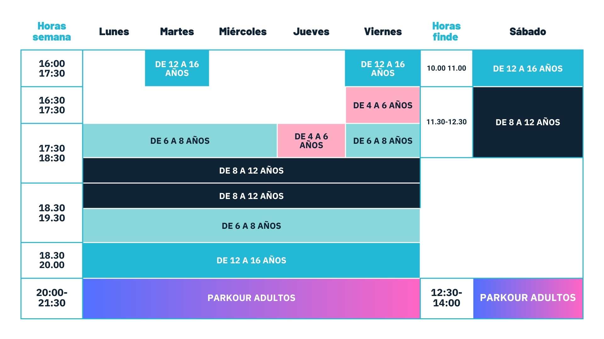 Superamos obstáculos y trabajamos en equipo enfrentando nuevos retos cada semana en un entorno seguro y con progresión.